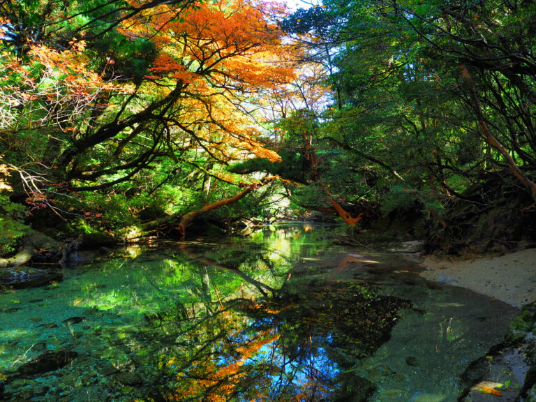鏡のような澄んだ淀川に、コハウチワカエデの紅葉が美しく映り込む絶景 世界自然遺産にも登録されている針葉樹の原生林を歩く、片道約1.5kmのトレッキングコースです。距離は短めですが、屋久島ならではのワイルドな登山道を、ゆっくりとしたペースで歩きます。 道中では、タカサゴサガリゴケやオオミズゴケなど多彩な苔類、そしてヤクシマシャクナゲなどの屋久島固有の植物たちを間近に観察。深い森の静けさの中で、生命の […] -