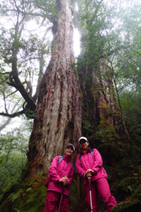 みんなそろって縄文杉の前でハイ、ポーズ!