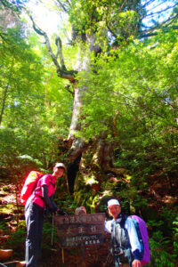 白谷小屋の手前にあるくぐり杉にて。 みんないい笑顔してますね~!!
